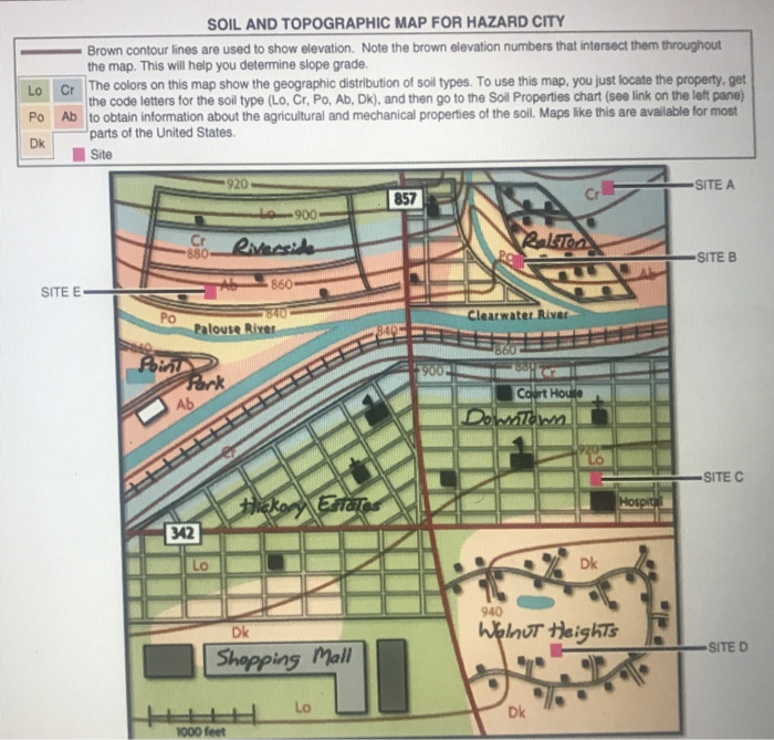 Solved: SOIL AND TOPOGRAPHIC MAP FOR HAZARD CITY Brown Con Types of Maps: Political, Climate, Elevation, and More.